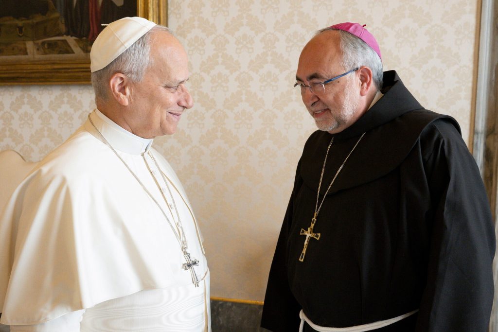 Salió soleada la mañana en esas horas tempraneras de Roma. Los nueve obispos de la Comisión Ejecutiva de la Conferencia Episcopal Española teníamos una cita importante en el palacio apostólico en el Vaticano: nos íbamos a encontrar con el Papa León XIV. Habíamos pedido meses atrás este encuentro con él, al poco de ser elegido sucesor de San Pedro. Con los atuendos episcopales, menos yo que endosé mi hábito franciscano, nos dirigimos con ilusión y grande expectativa a ese deseado encuentro atravesando el Cortile de San Dámaso. Diferentes pasillos y pequeñas estancias para audiencias menores con los solios para el pontífice previendo las visitas con grupos grandes, medianos y pequeños de fieles, en una impresionante exposición a nuestro paso de paredes decoradas con frescos renacentistas, tapices y mobiliario que llevan allí siglos viendo pasar a tantas gentes. Finalmente llegamos a la biblioteca donde nos esperaba el Santo Padre.