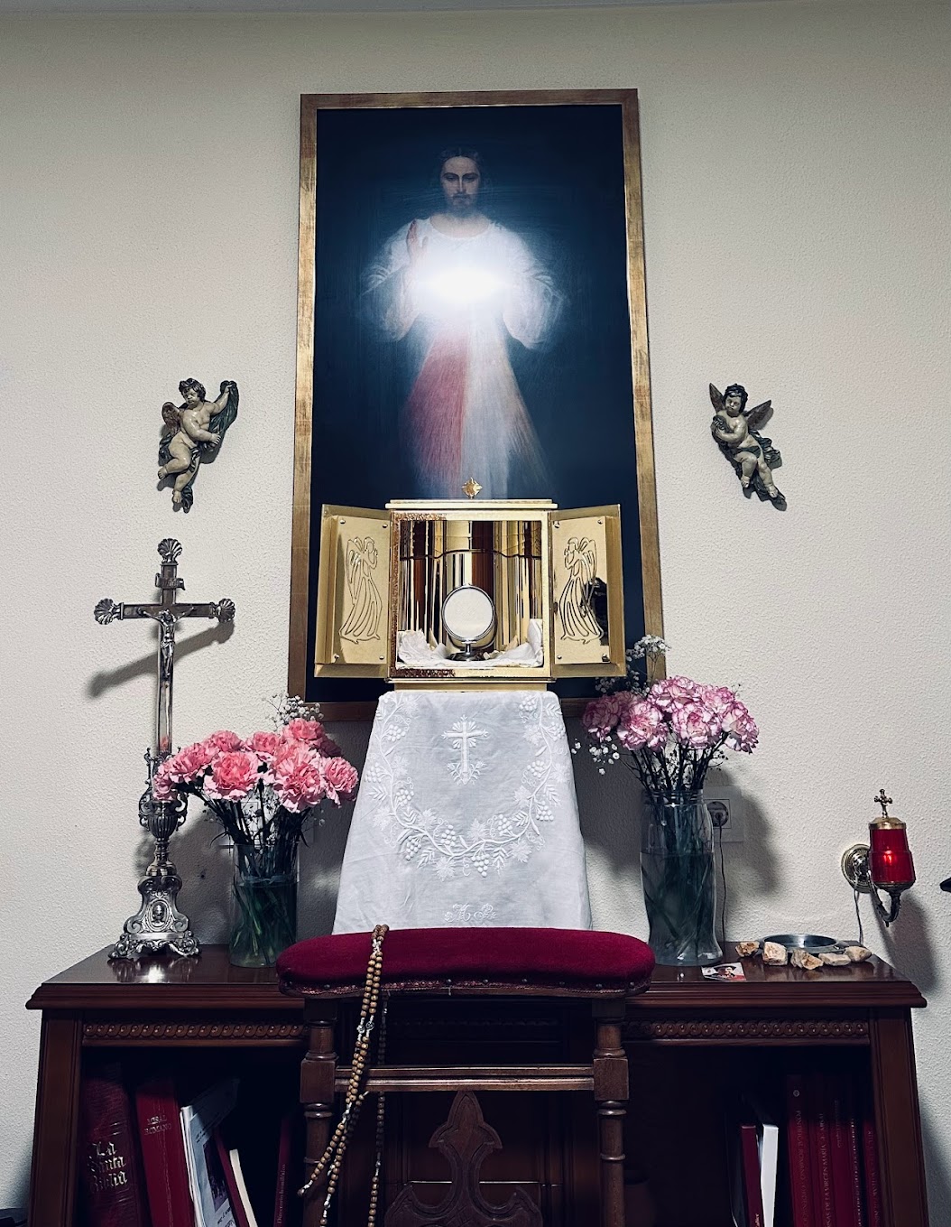 Con profunda alegría y convicción filial, consagro mi vida sacerdotal al Inmaculado Corazón de María, poniendo en sus manos purísimas mi ministerio, mis fatigas y mis esperanzas. Como hijo confiado, deseo reflejar su ‘sí’ generoso en cada acto de mi servicio pastoral, dejándome guiar por su corazón lleno de Dios. Que Ella – Madre y Modelo de la Iglesia – forme en mí el rostro misericordioso de Cristo Pastor, y use mi pobreza como instrumento de su amor en Allande. Desde hoy, mi sacerdocio es tuyo, oh María: moldea según tu corazón cada palabra, cada celebración y cada encuentro, para que sea puerta que lleve a tu Hijo.